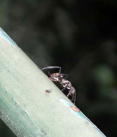 I'm more scared of these guys - Bullet Ants. When they bite it's supposed to hurt as bad as being shot. And they were moving quickly along the railings, including where we had to get hand holds to climb down.